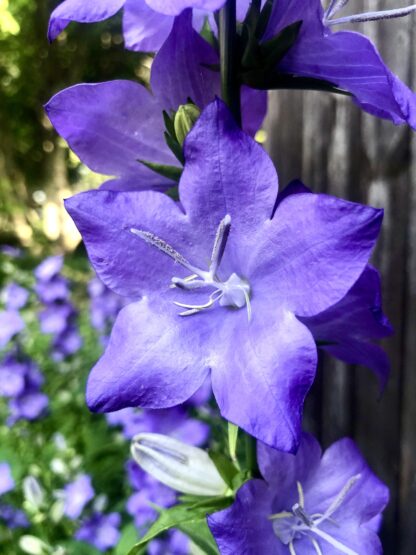A spreading form of bellflower, native to southwest China with upright, open purple flowers in late spring and sporadic flowers later in the season. Forms a tidy low rosette of evergreen of foliage. A very useful groundcover best planted where it can be left to spread. Performs quite well in part shade.